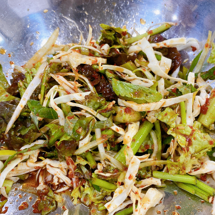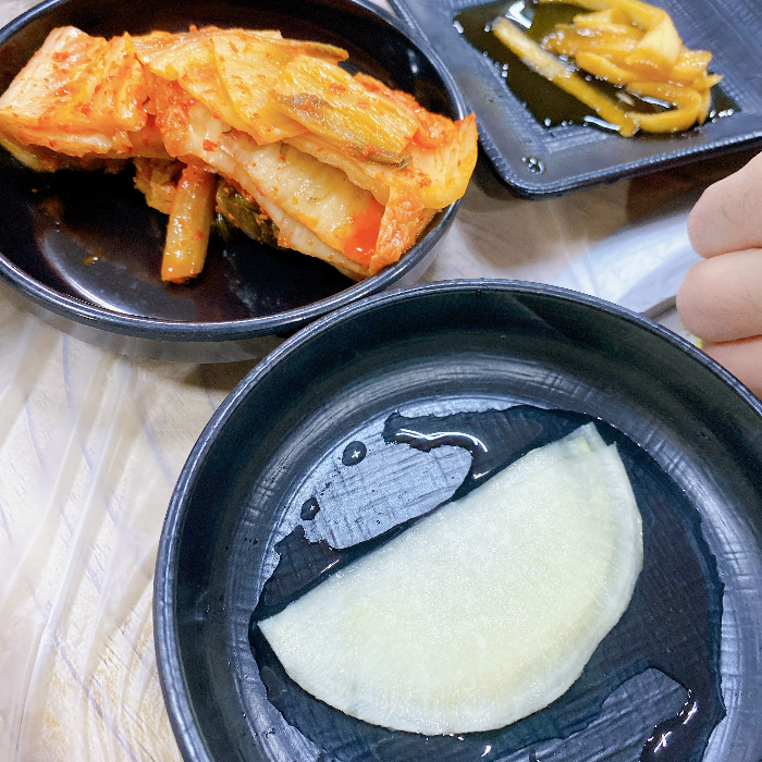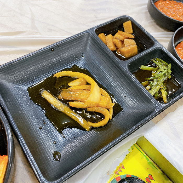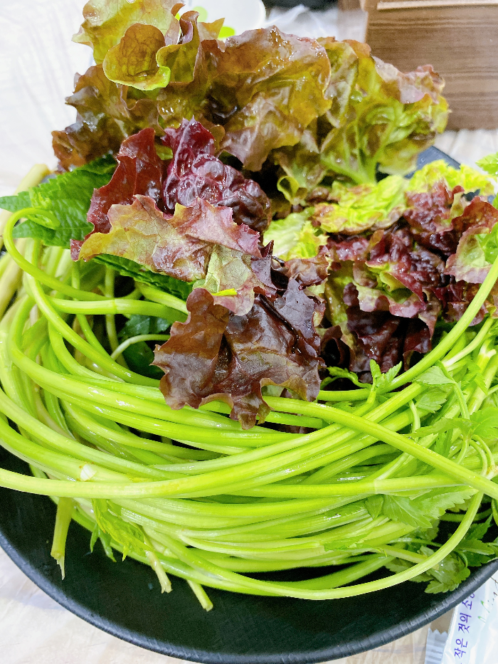 미나리 외에도 야채 반찬은 직접 기른 채소로 담근다고 설명해 주셨습니다. 못 보던 채소로 만든 장아찌 반찬이 있었는데 참 맛있게 먹었습니다.