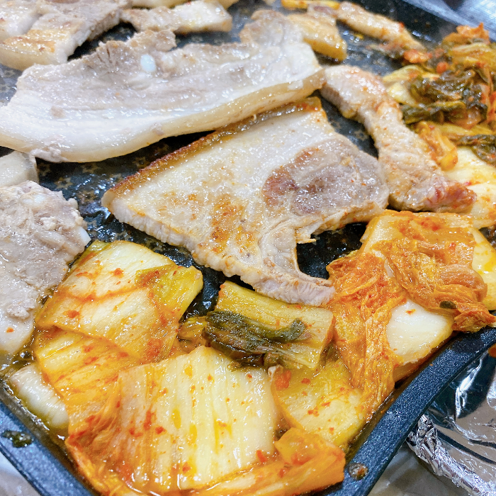 여기는 미나리 농장에서 하는 삼겹살집 같아요~ 미나리를 실컷 먹을 수 있는 고깃집입니다. 단일 메뉴라서 고민 없이 주문하면 됩니다. 미나리를 쌈으로도 먹고 볶음밥 만들 때 넣어서 먹었습니다.