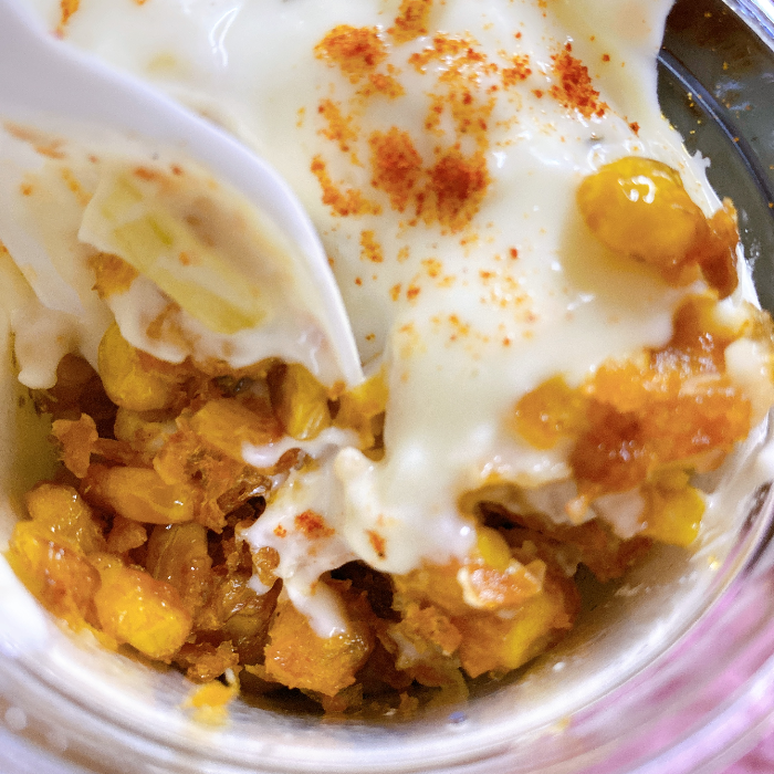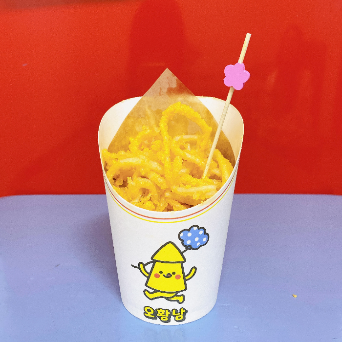 옥수수, 튀김, 마요네즈, 시즈닝. 맛이 없을 수가 없는 조합이라 생각합니다. 줄이 꽤 길었지만 기다려서 사 먹었습니다.