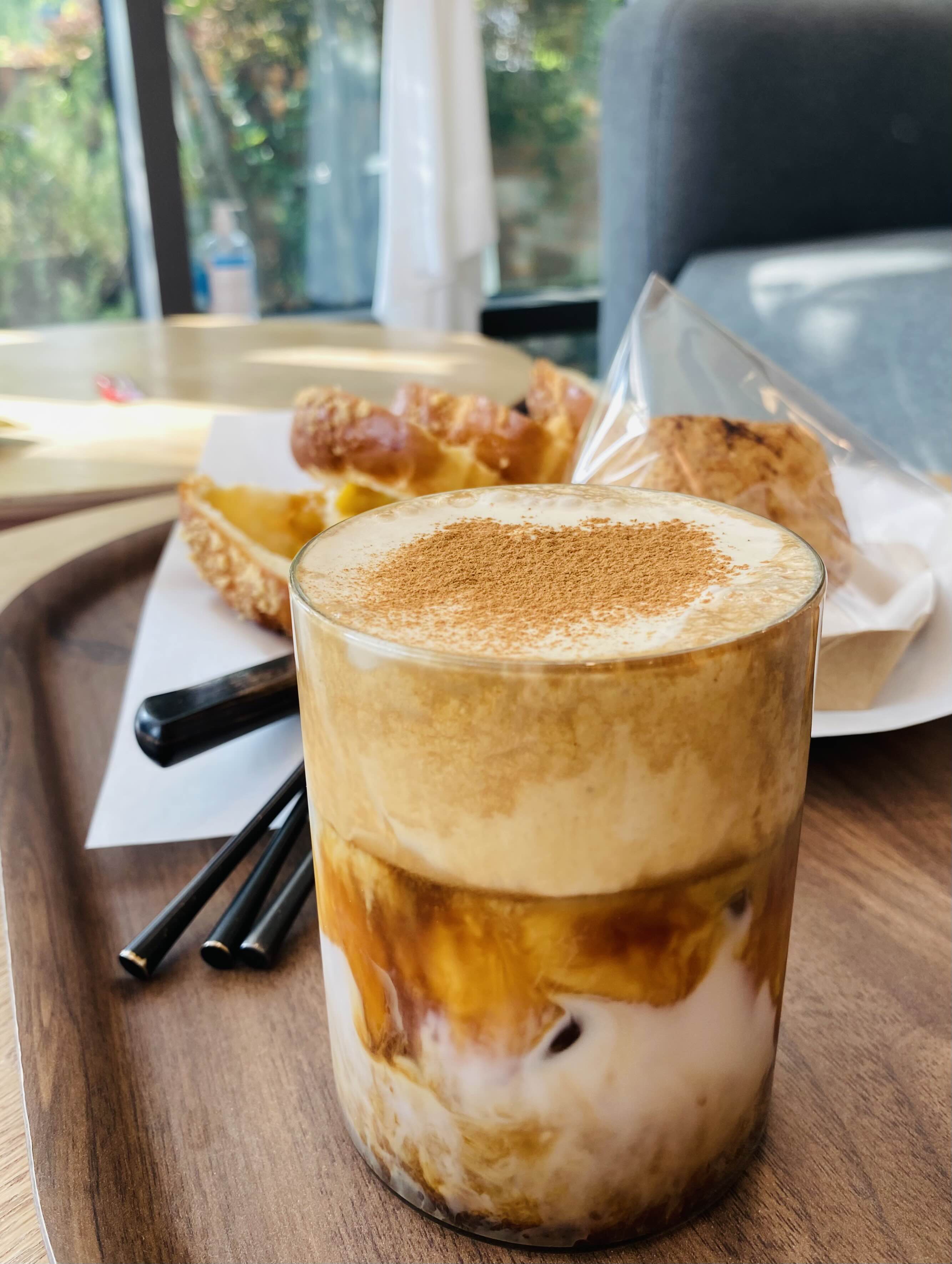 가게 이름이 메뉴에 들어가 있는 시그니쳐 메뉴. 버터 스카치 크림과 아몬드 브리즈 라테로 만든 메뉴라고 한다. 크림 위로 시나몬 가루가 뿌려져 있다. 라테를 마실 때마다 시나몬 향이 먼저 훅 치고 올라온다. 크림은 부드럽고 아몬드 우유라고 말하지 않으면 보통의 우유가 들어가 있는 라테 같기도 하다. 크림이 얹어진 카푸치노를 아이스로 먹는 느낌이다.