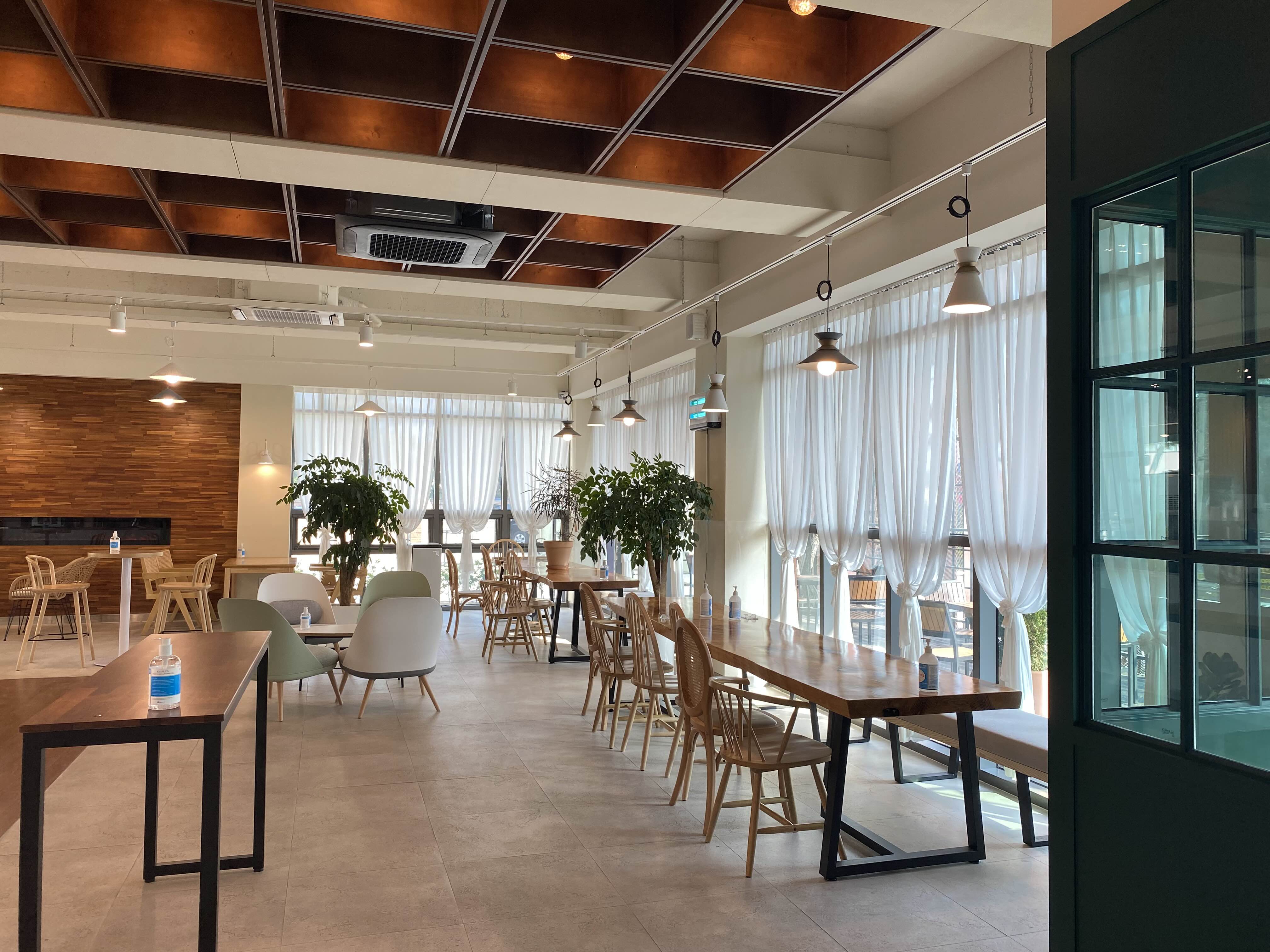 꽤 넓은 카페 안의 내부를 보고 여기저기 둘러보았다. 소파가 있는 자리가 꽤 많고 적당한 높이의 테이블이 있는 자리도 있다. 넓은 소파 자리도 있지만 단독 대여 룸도 2개 있다. 룸은 터서 크게 이용할 수도 있다. 5만 원 이상 2시간 무료, 이후 시간당 5천 원에 이용할 수 있다. 맛있는 것을 먹으면서 스터디 모임 하기 좋을 것 같다.