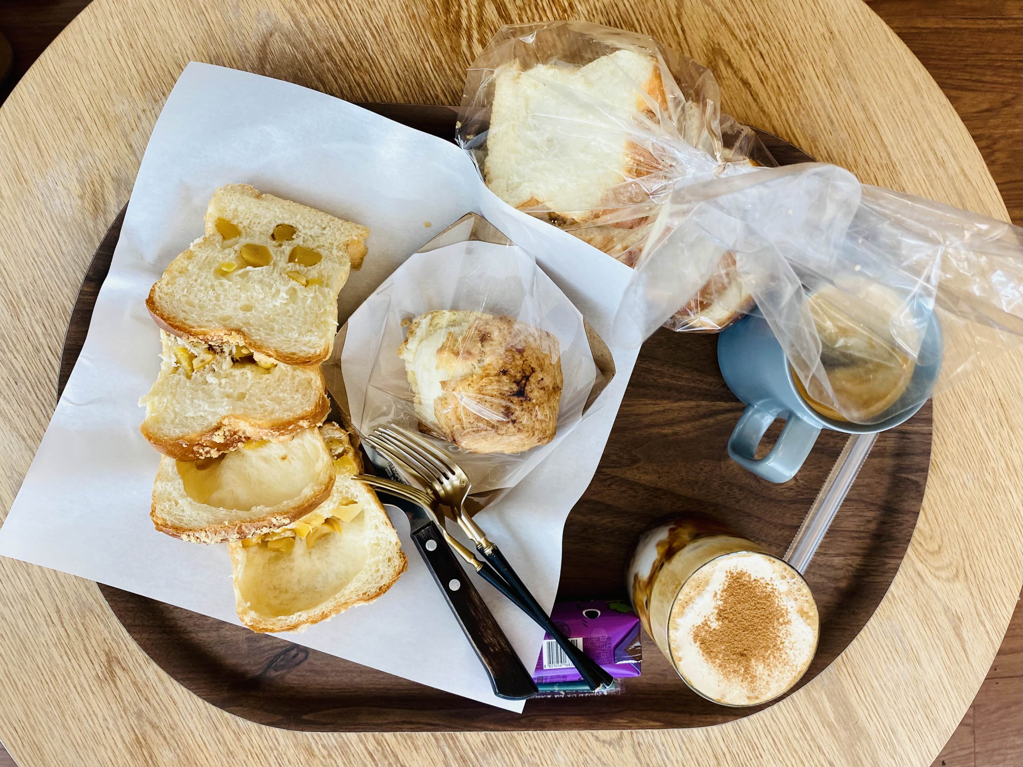 디저트로는 무화과 크림이 발라진 스콘과 밤식빵을 골랐다. 타르트, 도넛, 샌드위치 등 엄청 다양한 메뉴들 중에서 우왕좌왕하다가 골랐다. 스콘은 슴슴한 스타일이다. 밤식빵은 밤이 빼곡히 들어가 있고 부드럽고 촉촉한 빵의 맛이 좋았다.