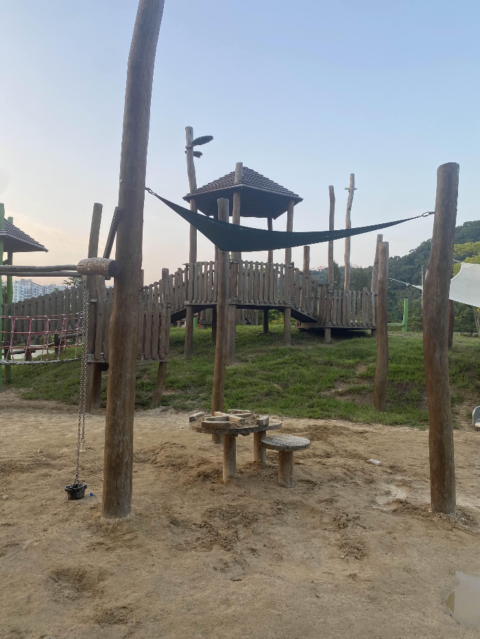 다만 한 여름에는 저 웅덩이에 물이 고이는 구조라서 벌레 목격담이 있더라고요. 저 안에 들어가서 노는 친구들도 있던데 안들어갔으면 좋겠단 생각이 들었습니다. 물이 빠지는 배수 구조로 저 시설을 만들었으면 좋았겠다는 생각도 들고요~!